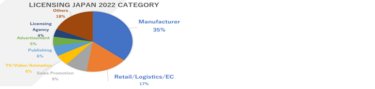 日本是世界上第三大授权市场,因为新冠疫情的原因,对于授权产业的需求还在不断增加,尤其是对电视/VTuber/SNS相关的授权,这些产品的授权可用于玩具/人物/塑料模具等的制作中;2022年日本该市场还在继续增长,因为主题公园/舞台表演/博物馆等其他场所恢复了运营,该行业有了巨大的发展空间。
